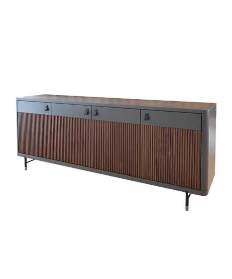 Home Aparadores Aparador Fidji Aparador Fidji SKU: 081013001 2.419,00 € Desconto de %. Comprar Contactar Adicionar à wishlist Aparador com gaveta interior com faqueiro Dimensões: 2.20m x 0.50m x 0.86m Materiais e acabamentos: Lacado mate; Nogueira * Para outras cores ou revestimentos solicite orçamento. Partilhar