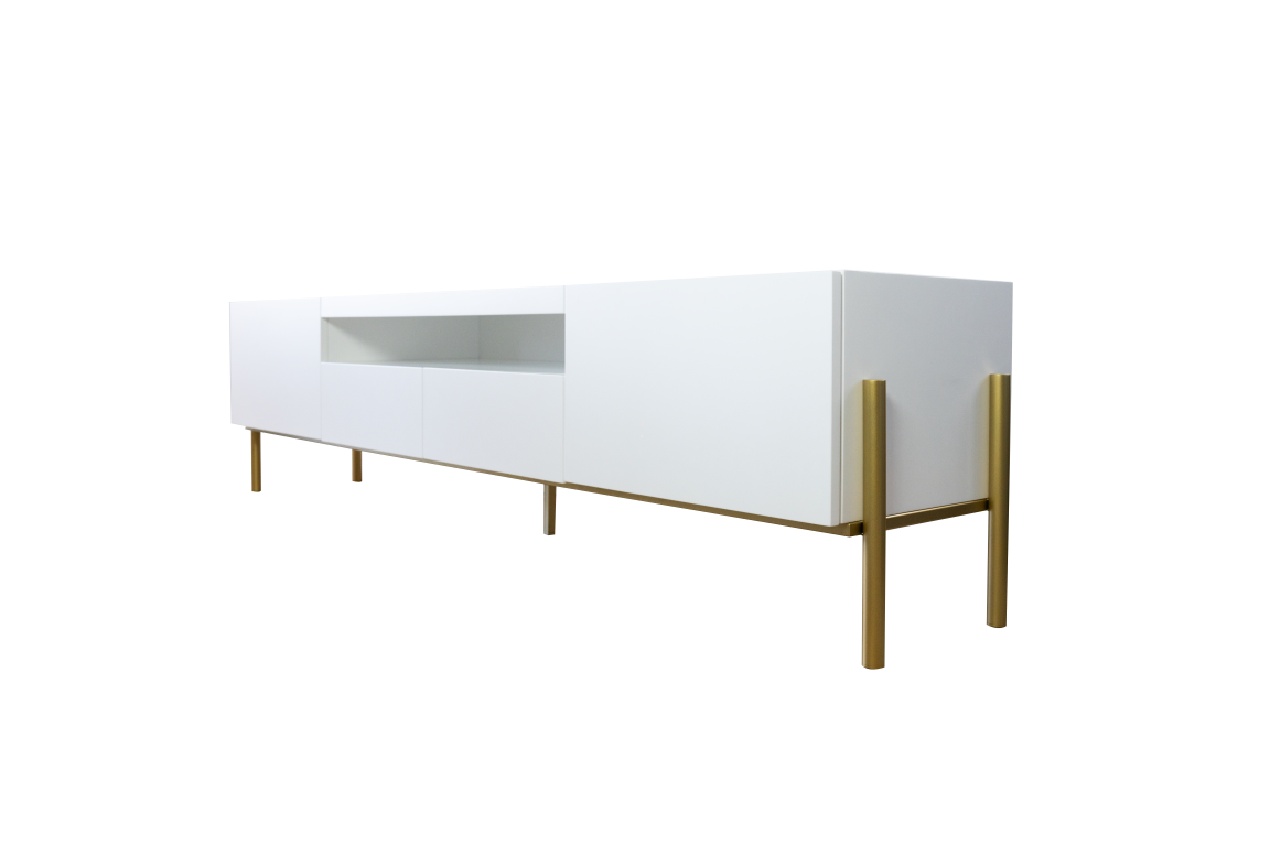 Home Móveis tv Base tv Elvis Base tv Elvis SKU: 064535155 1.188,00 € Desconto de %. Comprar Contactar Adicionar à wishlist Base tv com pé metálico dourado e acabamento em lacado branco mate. Dimensões: 2.21m x 0.47 x 0.55m Materiais e acabamentos: MDF lacado branco mate; Ferro pintado * Para outras cores ou revestimentos solicite orçamento. Partilhar