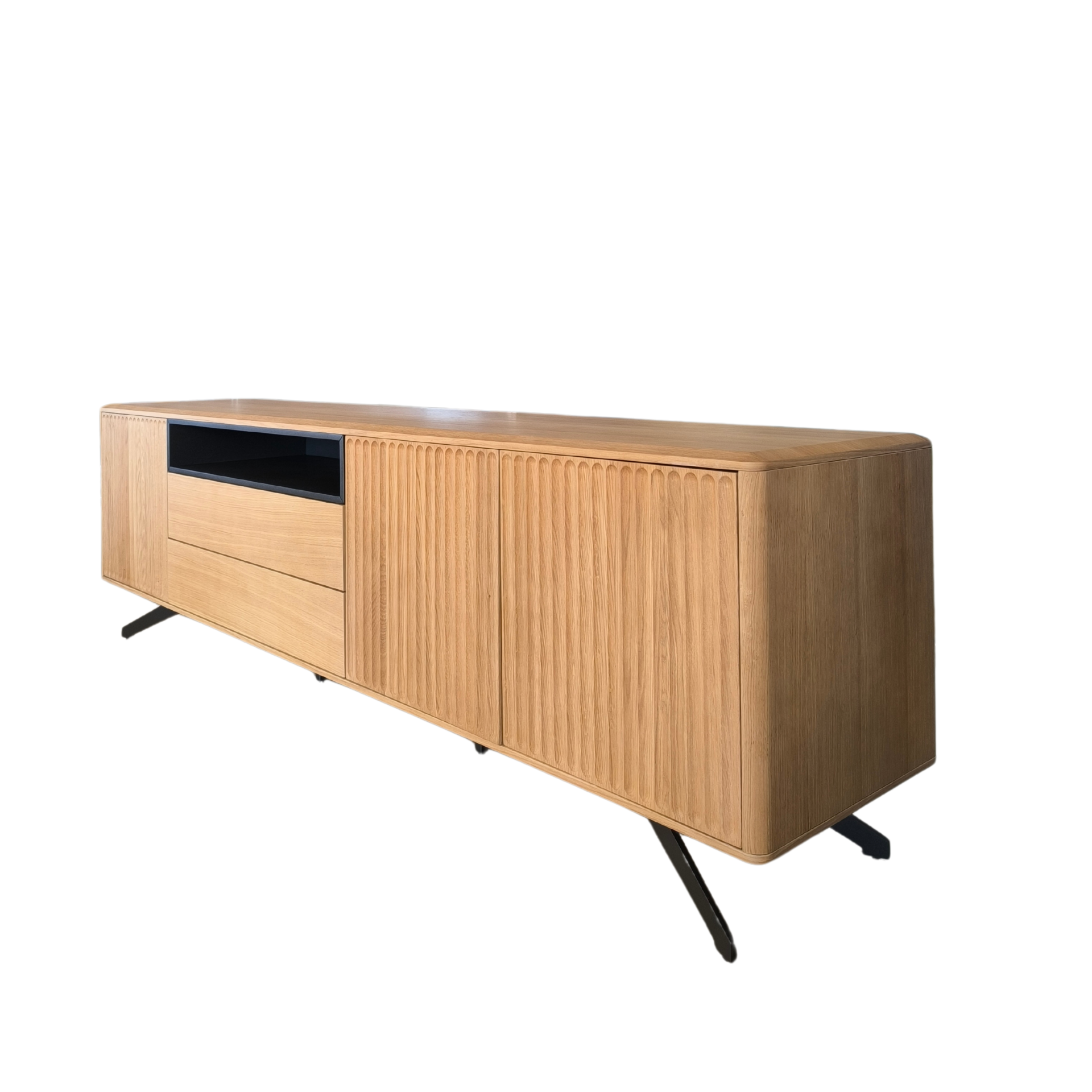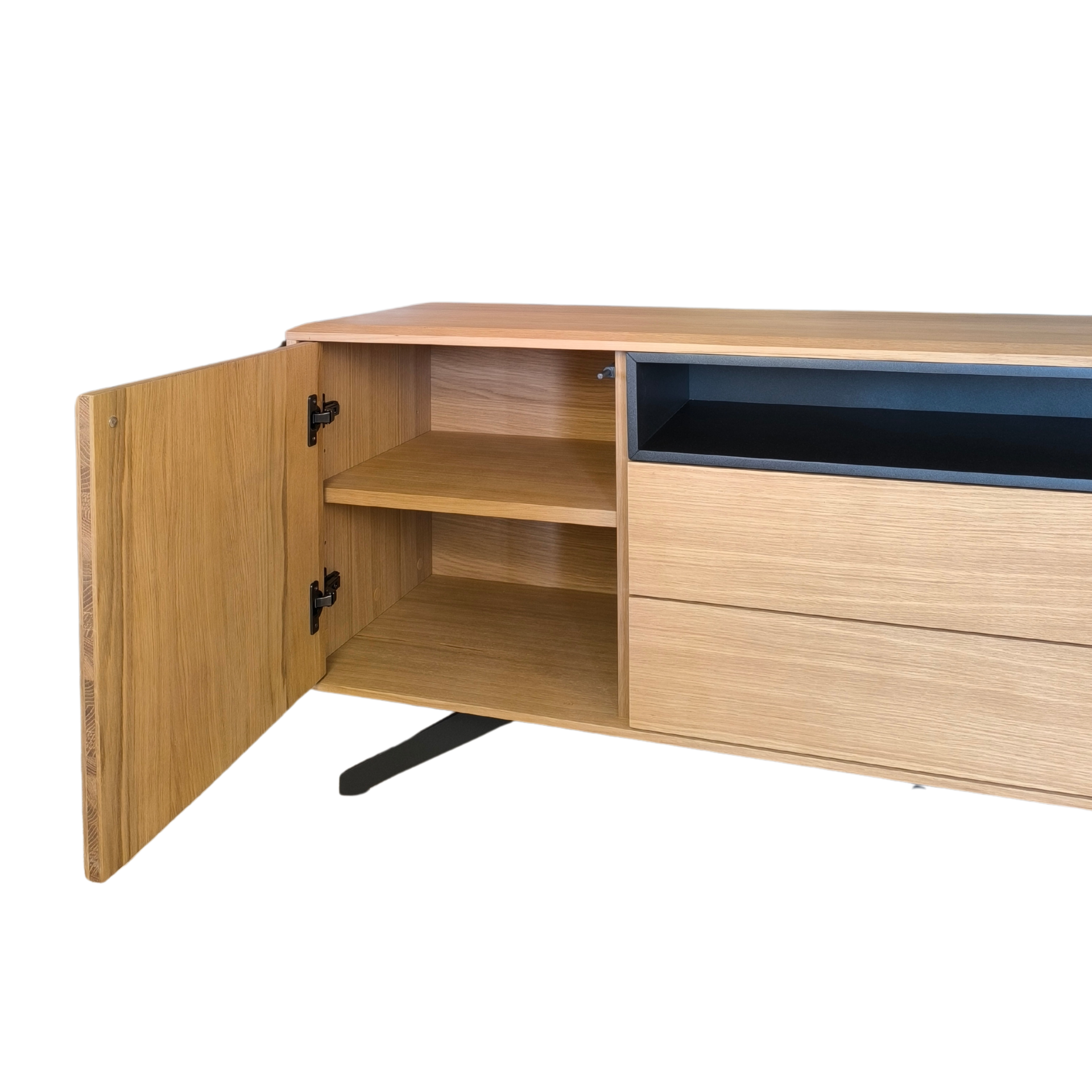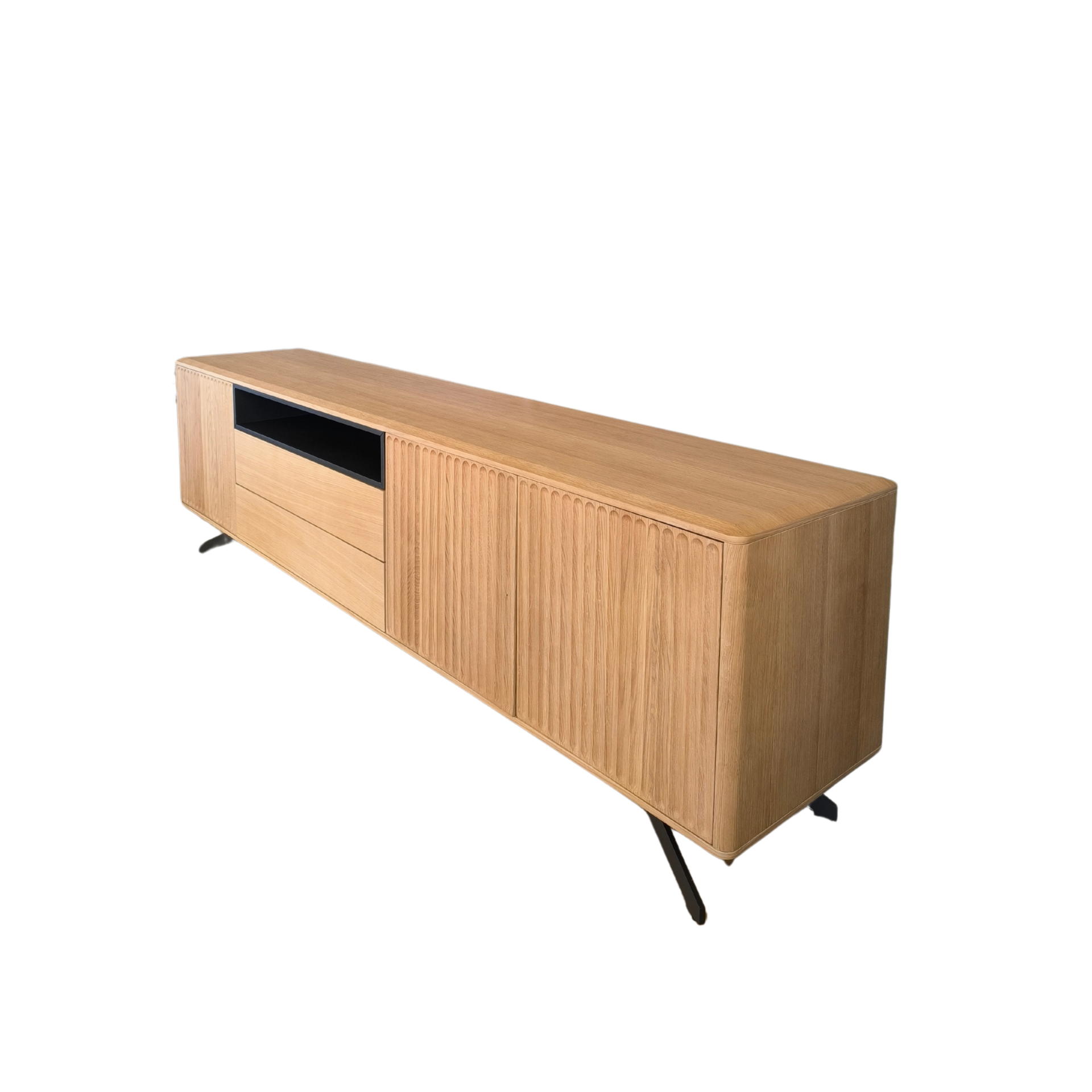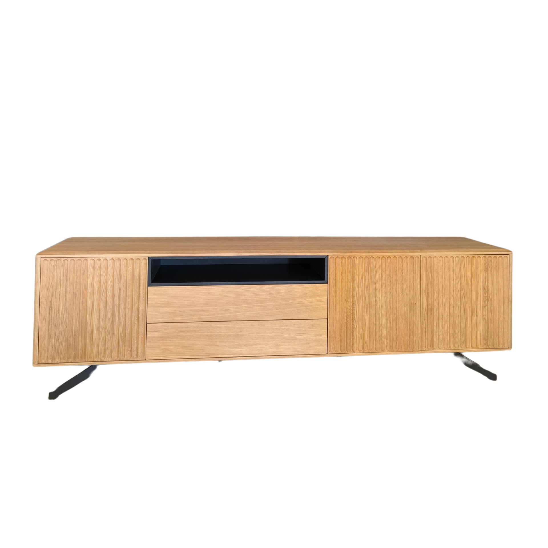 Home Móveis tv Base tv Galia Base tv Galia SKU: 036335004 1.698,00 € Desconto de %. Comprar Contactar Adicionar à wishlist Móvel tv Gália, com pé metálico e estrutura em carvalho natural. Possui três portas, duas gavetas e zona aberta para a box tv. Dimensões: 2.20m x 0.45m x 0.64m * Para outras cores ou revestimentos solicite orçamento. Partilhar