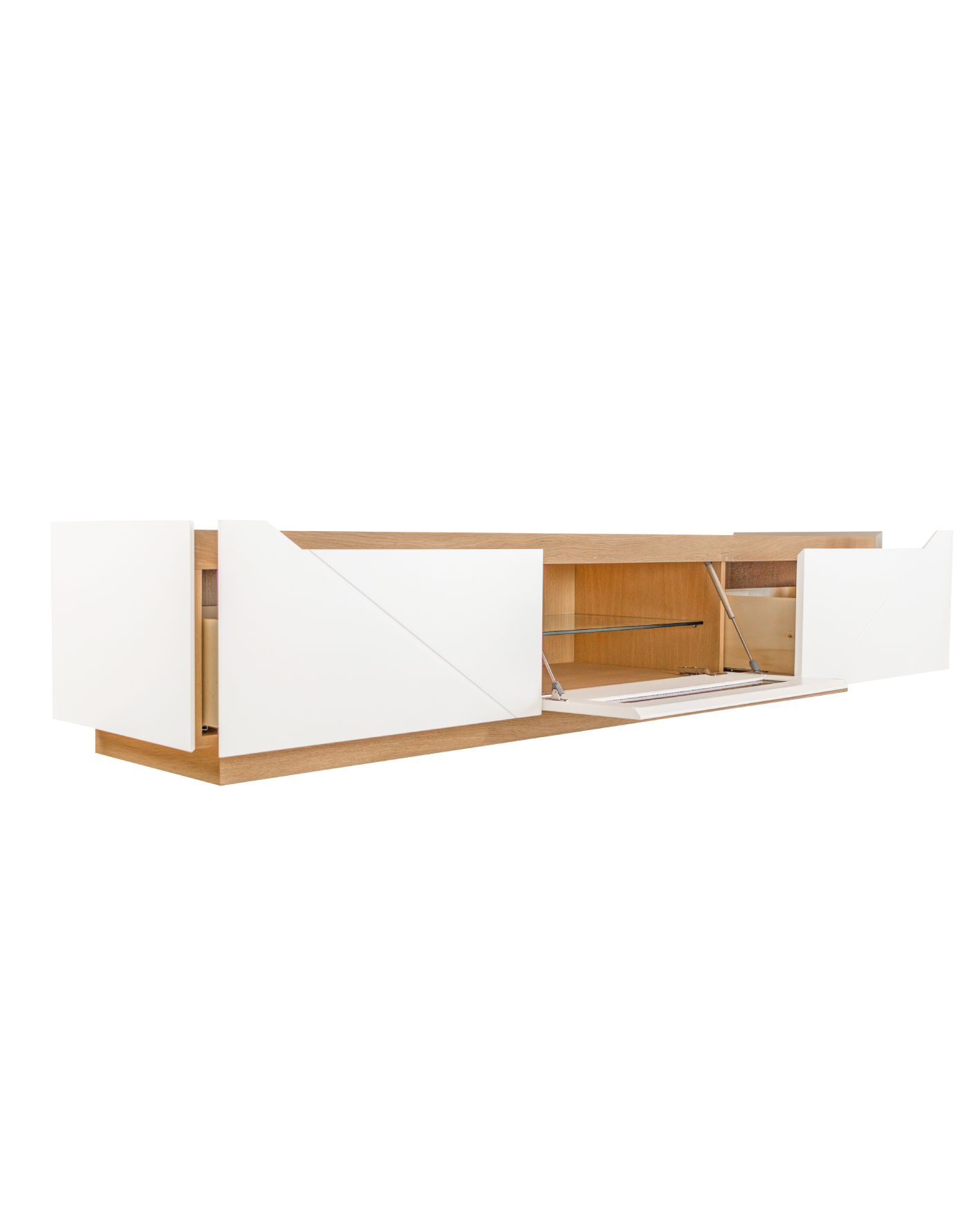 Home Móveis tv Base tv Londres Base tv Londres SKU: 063935024 995,00 € Desconto de %. Comprar Contactar Adicionar à wishlist Base tv com 2 gavetas e 1 porta basculante, com prateleira em vidro no interior e abertura em vidro para permitir ter a box tv no interior. Dimensões: 2.60m x 0.45m x 0.42m Materiais e acabamentos: Carvalho natural; Lacado branco mate. * Para outras cores ou revestimentos solicite orçamento. Partilhar