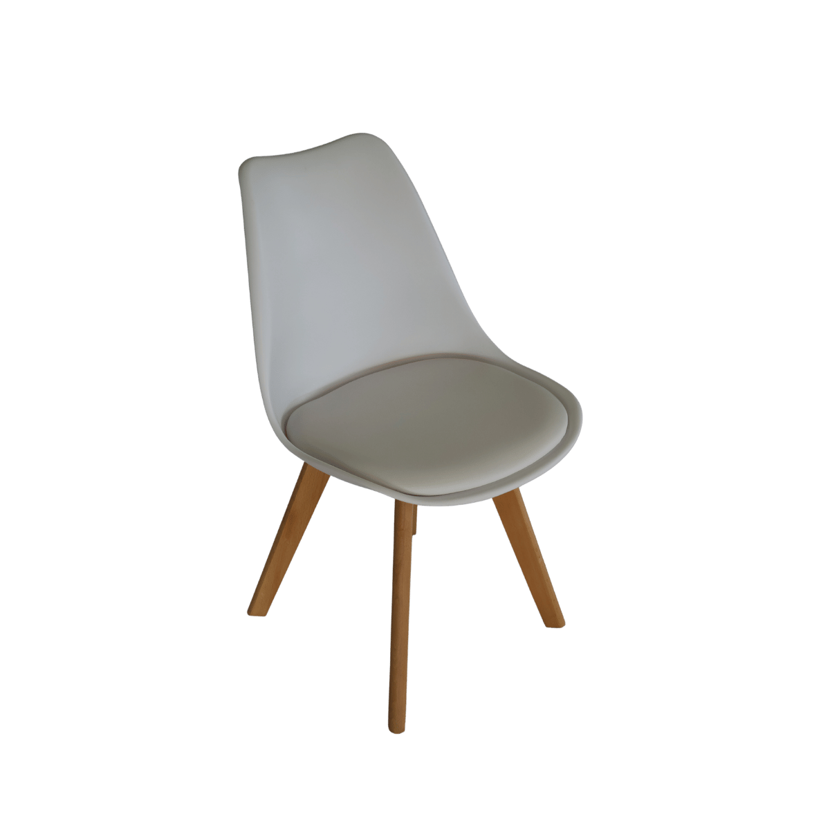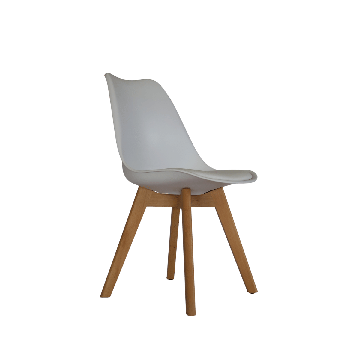 Cadeira em estlo nórdico com assento estofado para um ótimo conforto. Ideal para zonas de refeição pois a estrutura em polipropileno e o estofo em ecopele permitem uma limpeza muito fácil.