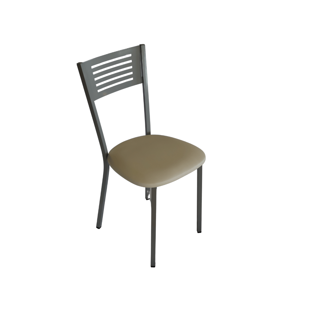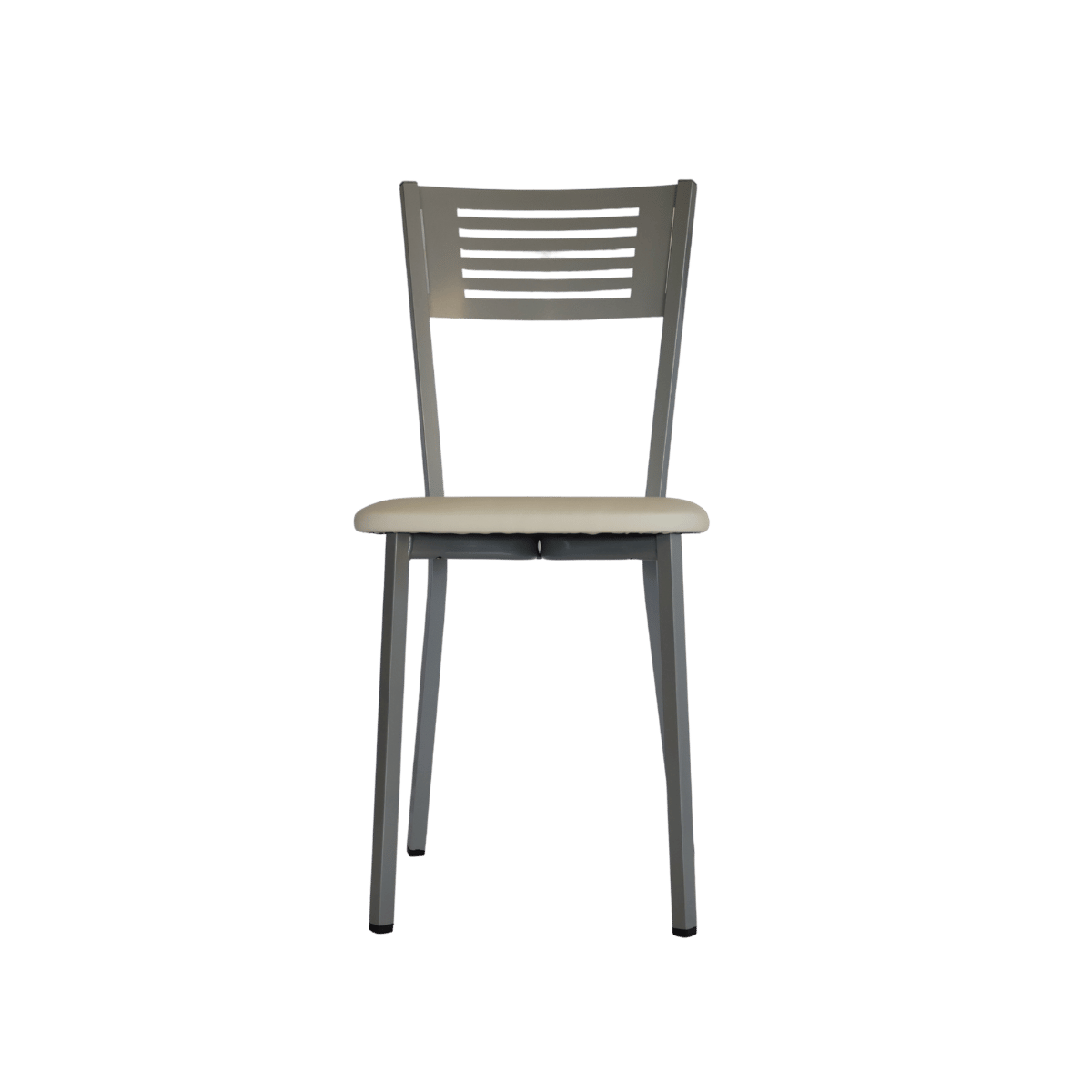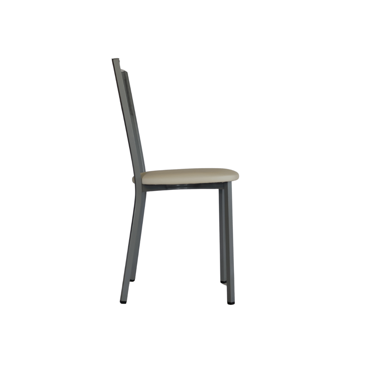 A cadeira Orquidea é ideal para espaços de refeição pois os seus materiais proporcionam uma limpeza fácil, com a estrutura metálica e o assento em napa.
