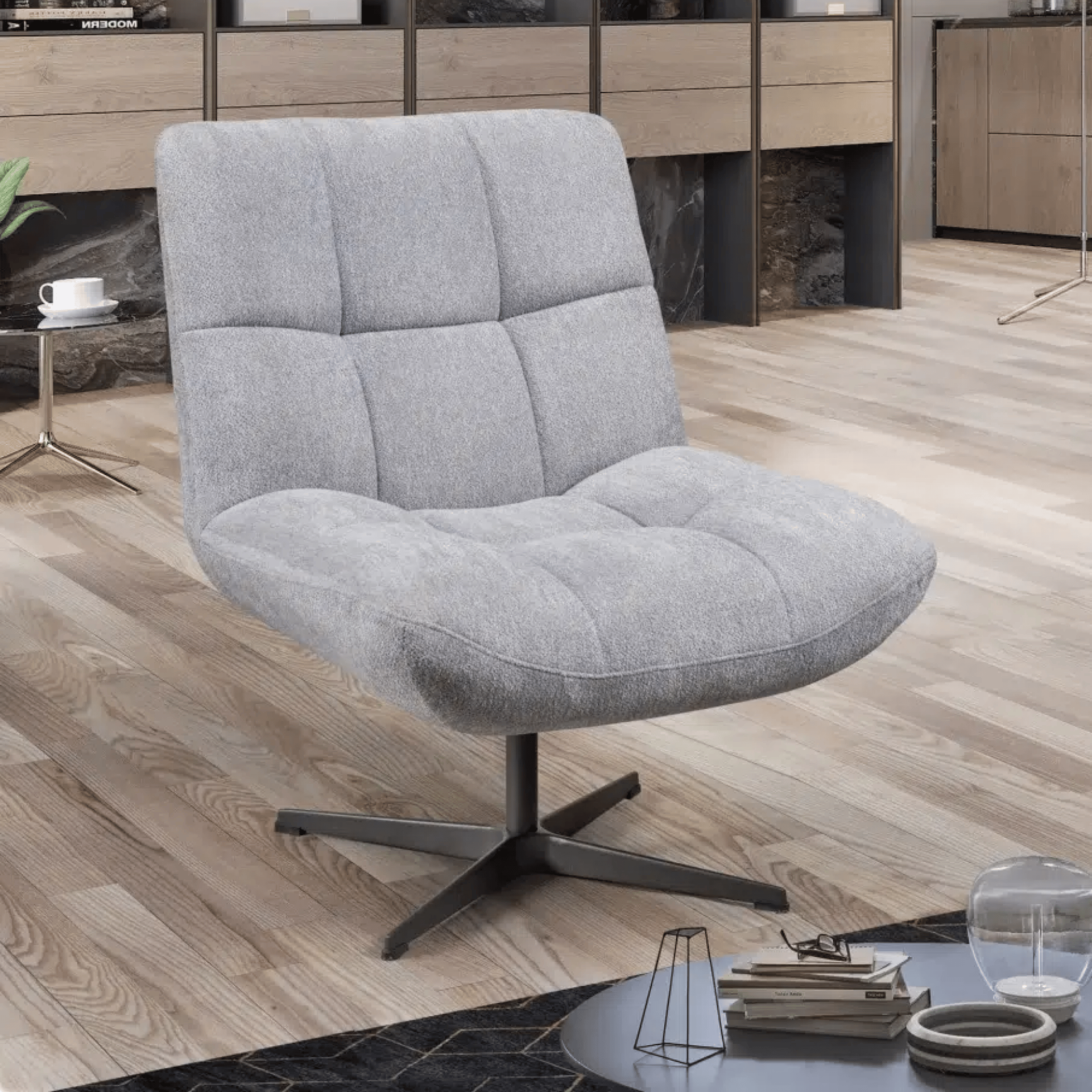 Home Cadeirões Cadeirão rotativo Angel Cadeirão rotativo Angel SKU: 082941001 399,00 € Desconto de %. Comprar Contactar Adicionar à wishlist Cadeirão rotaivo Angel, com base metálica preta e estofo em cinza pérola. Dimensões: 0.70m x 0.80m x 0.86m *Artigo disponível no nosso showroom. Partilhar
