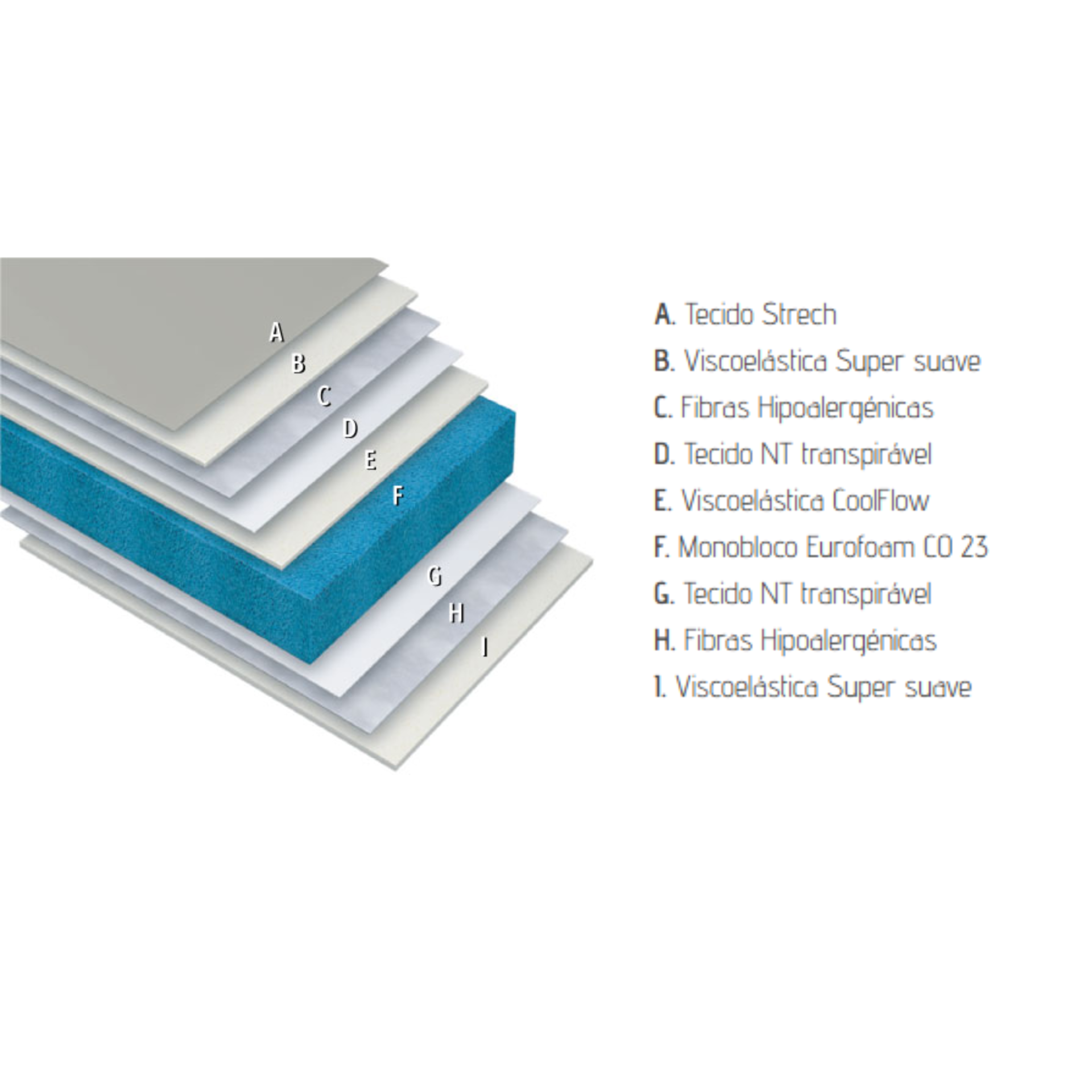 A sua base de suporte é composta em CO 23 de alta densidade, de células abertas o que oferece uma excelente ventilação.