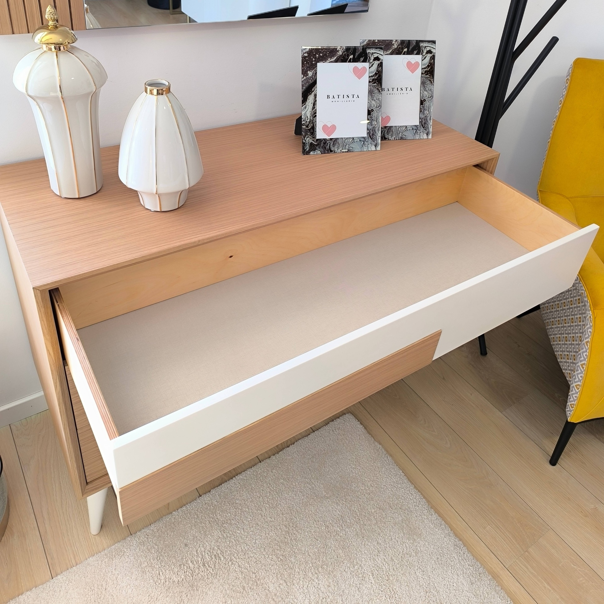Home Cómodas Cómoda Jubileu Cómoda Jubileu SKU: 064505023 713,00 € Desconto de %. Comprar Contactar Adicionar à wishlist A cómoda Jubileu torna-se a peça de destaque de qualquer quarto pela combinação de duas cores e pelos pés cónicos! Dimensões: Comprimento: 1.25m; Profundidade: 0.48m; Altura: 0.85m. Materias e acabamentos: Carvalho natural; Branco pérola mate. *Disponível no showroom. Tags Showroom Partilhar