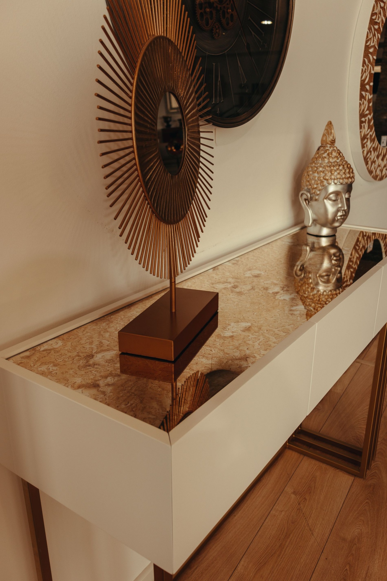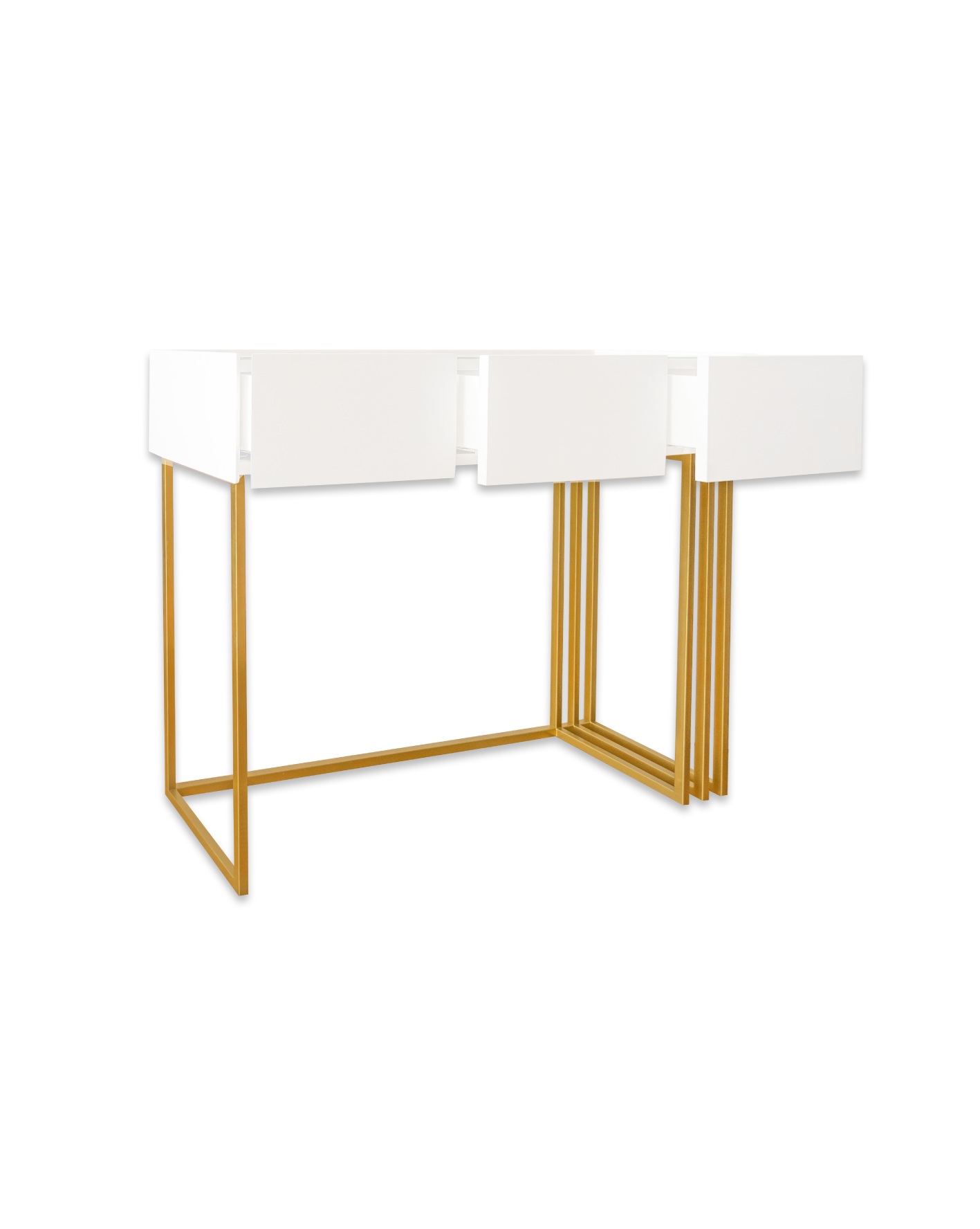 Home Consolas Consola Alfa Consola Alfa SKU: 064521010 868,00 € Desconto de %. Comprar Contactar Adicionar à wishlist Dimensões: 1.30m x 0.37m x 0.88m Materiais e acabamentos: Ferro lacado a dourado; Lacado branco mate; Espelho envelhecido. * Para outras cores ou revestimentos solicite orçamento. Tags douradolacado branco Características Partilhar
