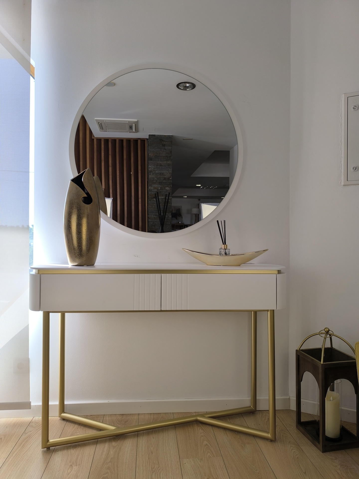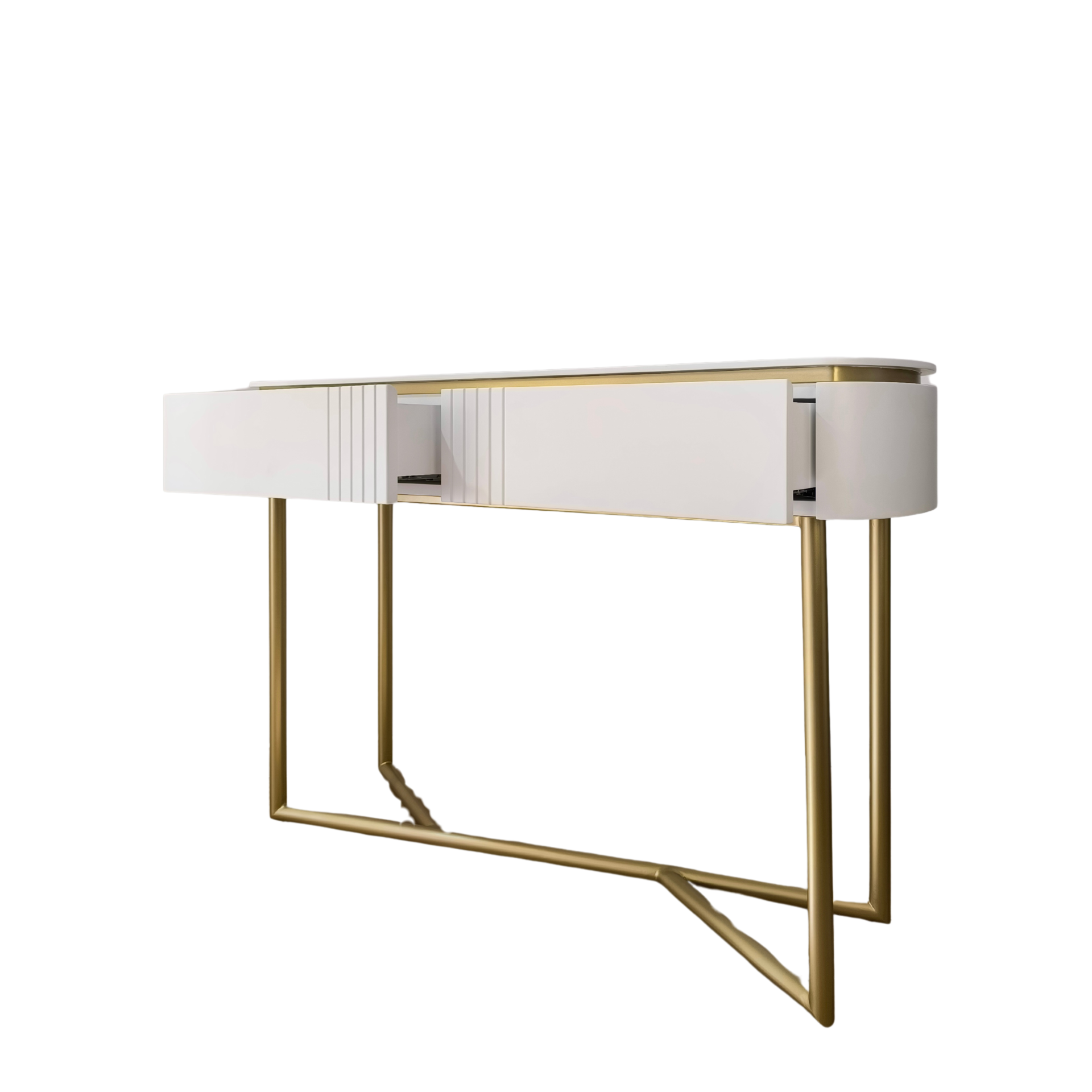 Home Consolas Consola Ducati Consola Ducati SKU: 064521044 899,00 € Desconto de %. Comprar Contactar Adicionar à wishlist Consola Ducati com pé metálico dourado e estrutura em lacado branco mate, com duas gavetas. Dimensões: 1.30 m x 0.36m x 0.86m * Para outras cores ou revestimentos solicite orçamento. Partilhar