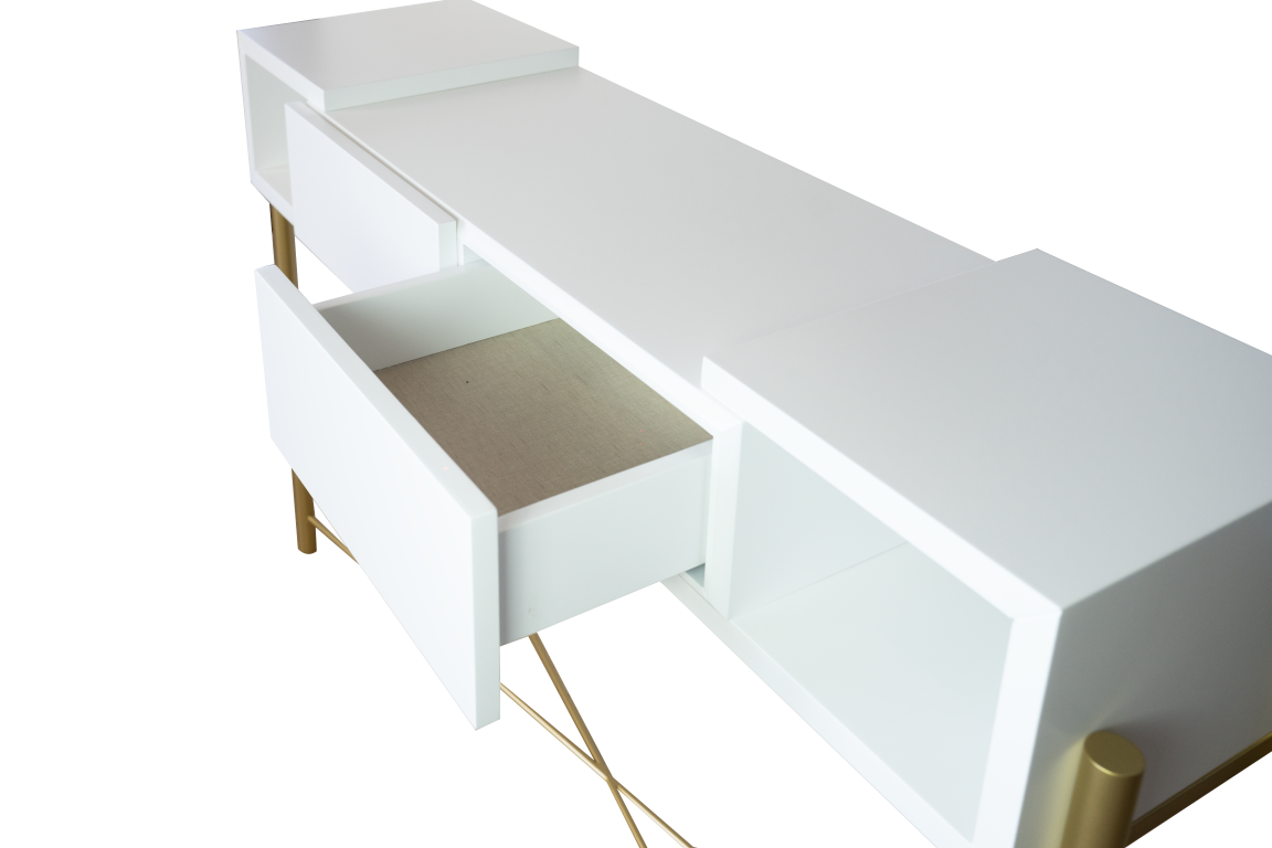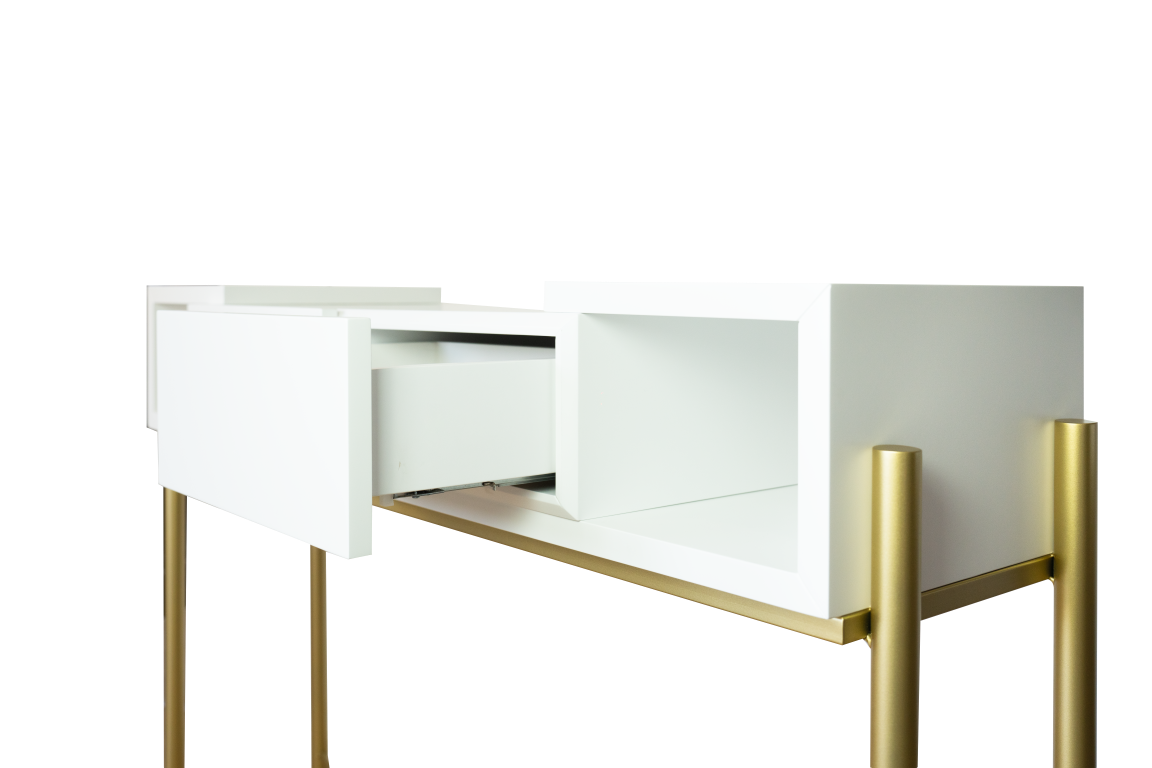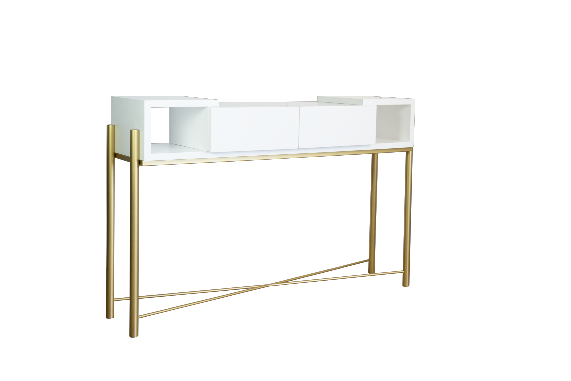 Home Consolas Consola Elvis Consola Elvis SKU: 064521040 808,00 € Desconto de %. Comprar Contactar Adicionar à wishlist Consola com pé metálico dourado e acabamento em lacado branco mate. Dimensões: 1.36m x 0.38m x 0.88m Materiais e acabamentos: Lacado branco mate; Ferro pintado. * Para outras cores ou revestimentos solicite orçamento. Partilhar