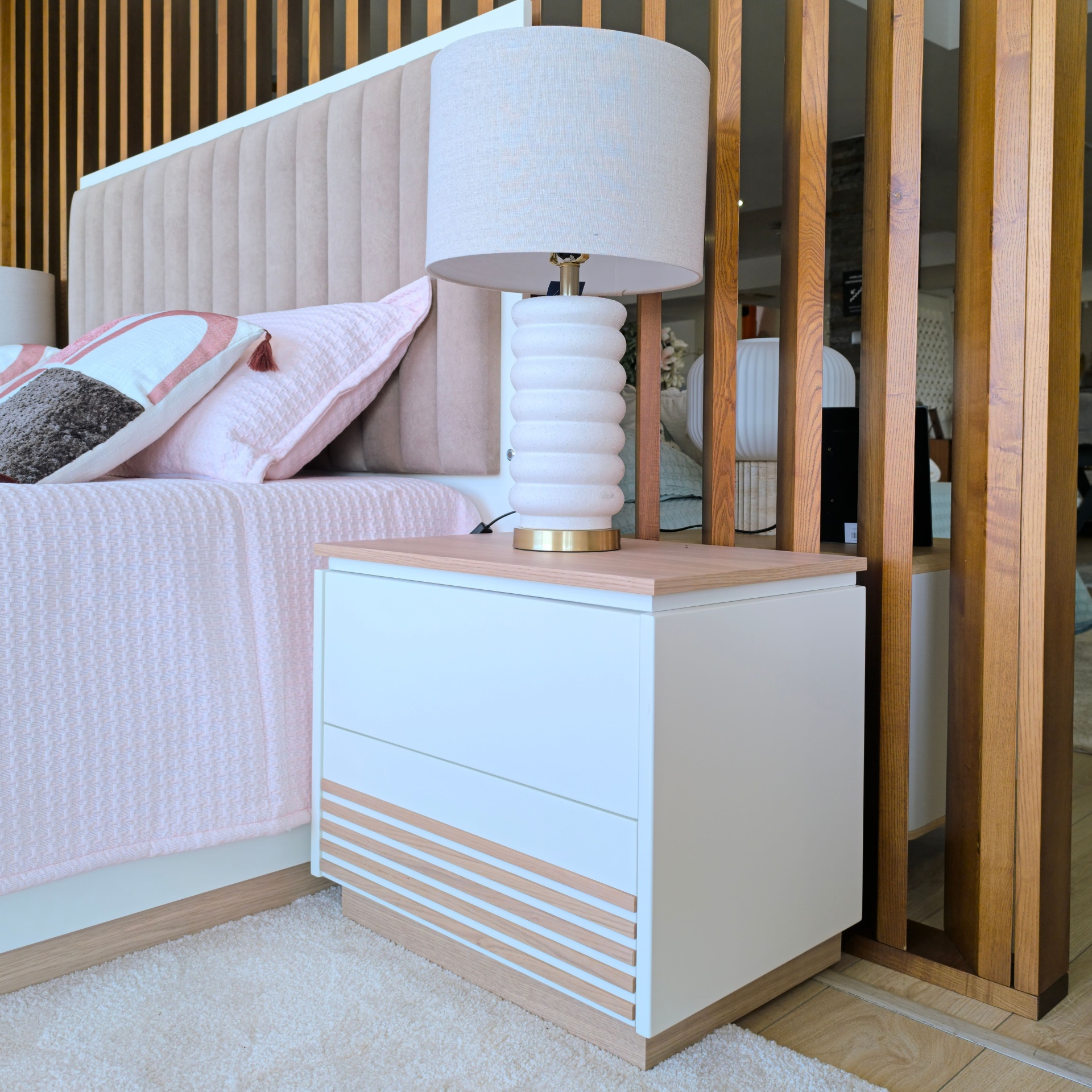 Home Mesas de cabeceira Mesa cabeceira NOA Mesa cabeceira NOA SKU: 065203007 388,00 € Desconto de %. Comprar Contactar Adicionar à wishlist A mesa de cabeceira Noa tem um design reto e elegante para criar a harmonia perfeita. Dimensões: Comprimento: 0.60m; Profundidade: 0.40m; Altura: 0.50m. Materias e acabamentos: MDF lacado branco mate; Folha de carvalho pintado. *Disponível no showroom. Partilhar
