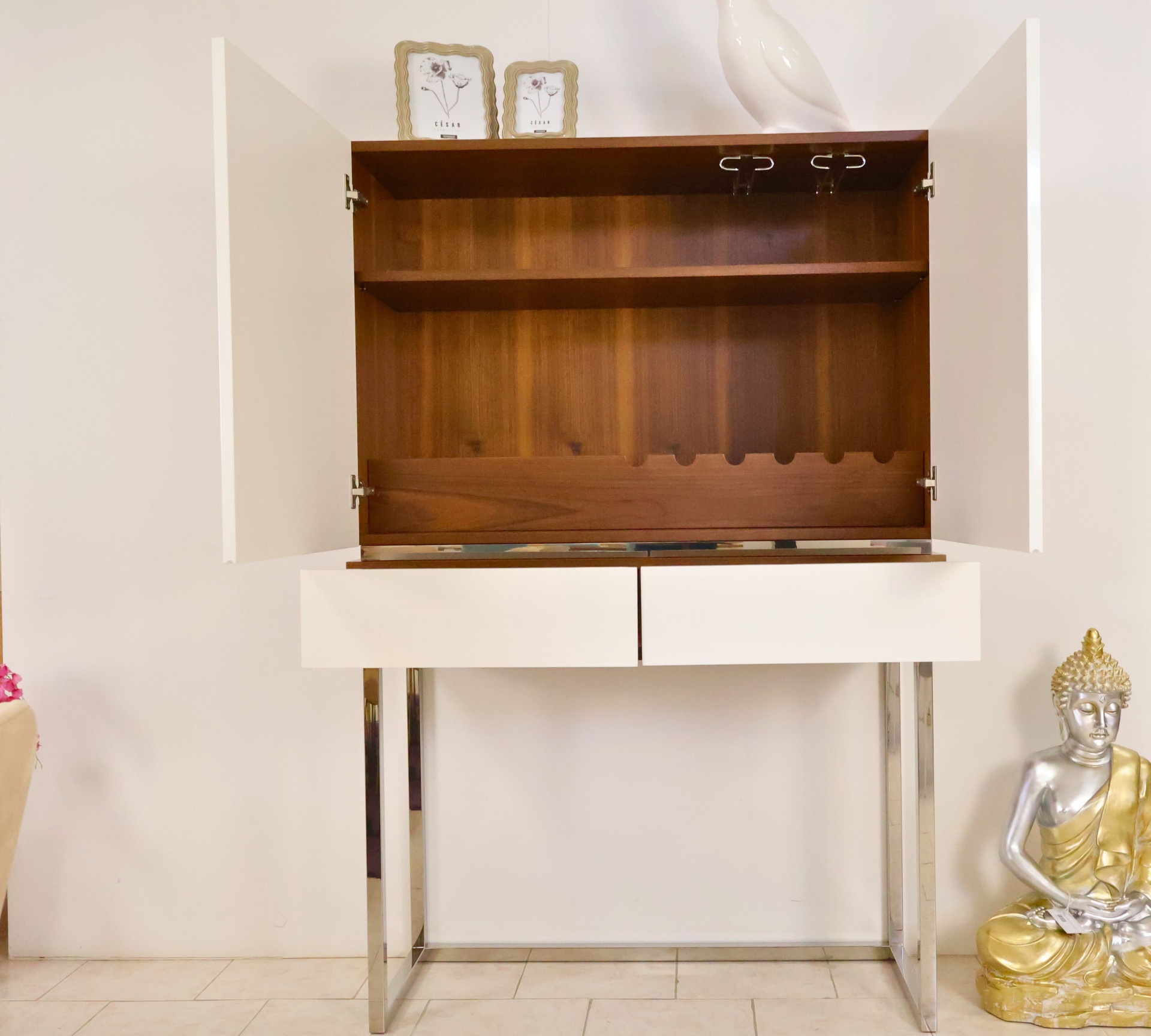 Home SALDOS Móvel bar OBAMA -20% Móvel bar OBAMA 1.140,00 € 1.425,00 € Desconto de 20%. Comprar Contactar Adicionar à wishlist O móvel bar Obama proporciona uma excelente arrumaçaõ, com duas portas com porta garrafas e porta copos no interior e ainda duas gavetas. Fabricado com pés em inox, e estrutura em mdf lacado branco brilho e folha de nogueira. Dimensões: Comprimento. 1.10m Profundidade: 0.42m Altura: 1.65m *Disponível no showroom. Campanha de saldos válida de 15 de Janeiro a 28 de Fevereiro de 2026, limitado ao stock existente. O artigo entregue será o que está na foto. Partilhar