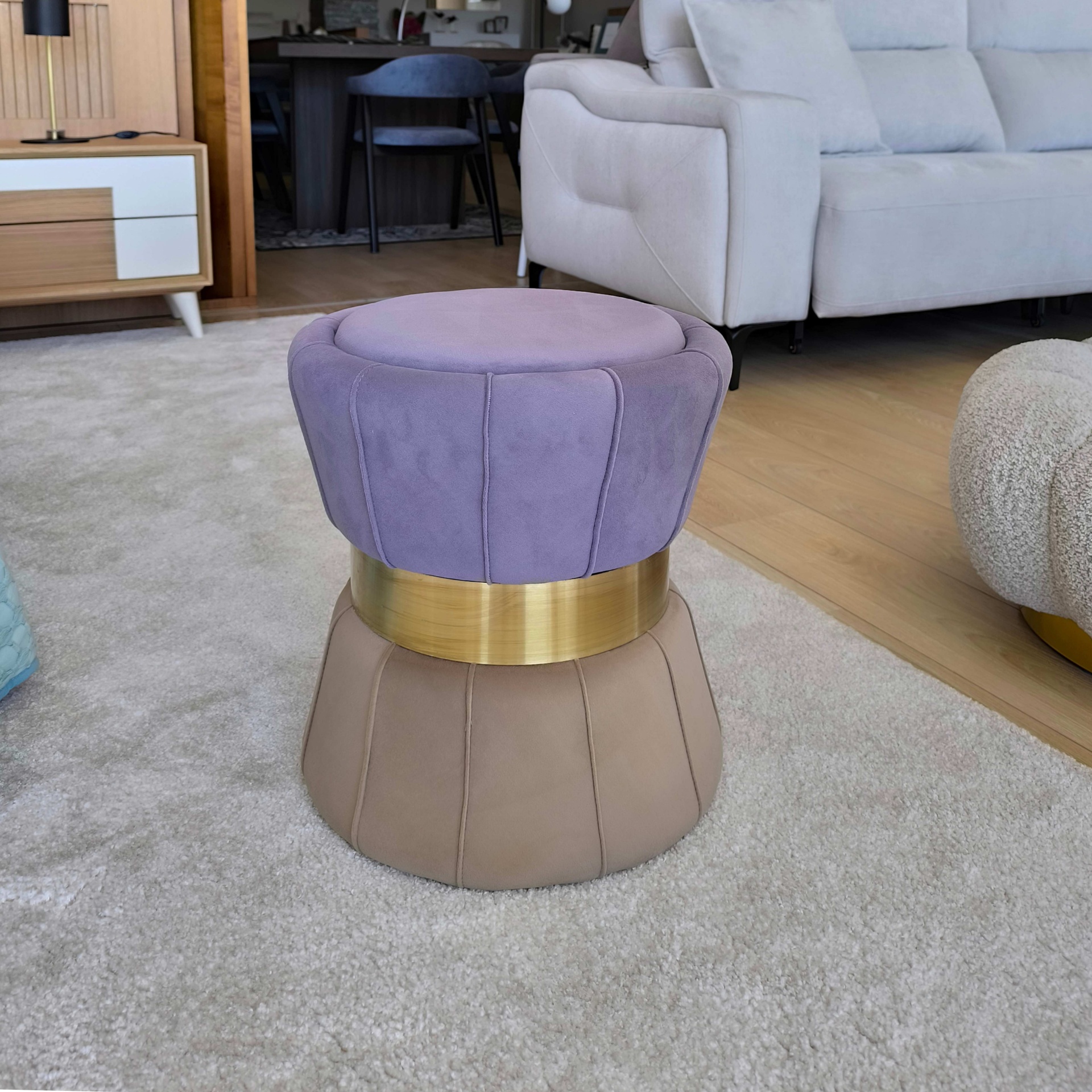Home Puffs Puff GP367110 Puff GP367110 SKU: 072177026 117,00 € Desconto de %. Comprar Contactar Adicionar à wishlist Puff com dois tons de estofo e pormenor em metal dourado. Dimensões: Diâmetro 0.40m; Altura 0.44m. *Disponivel no showroom Tags Showroom Características Partilhar