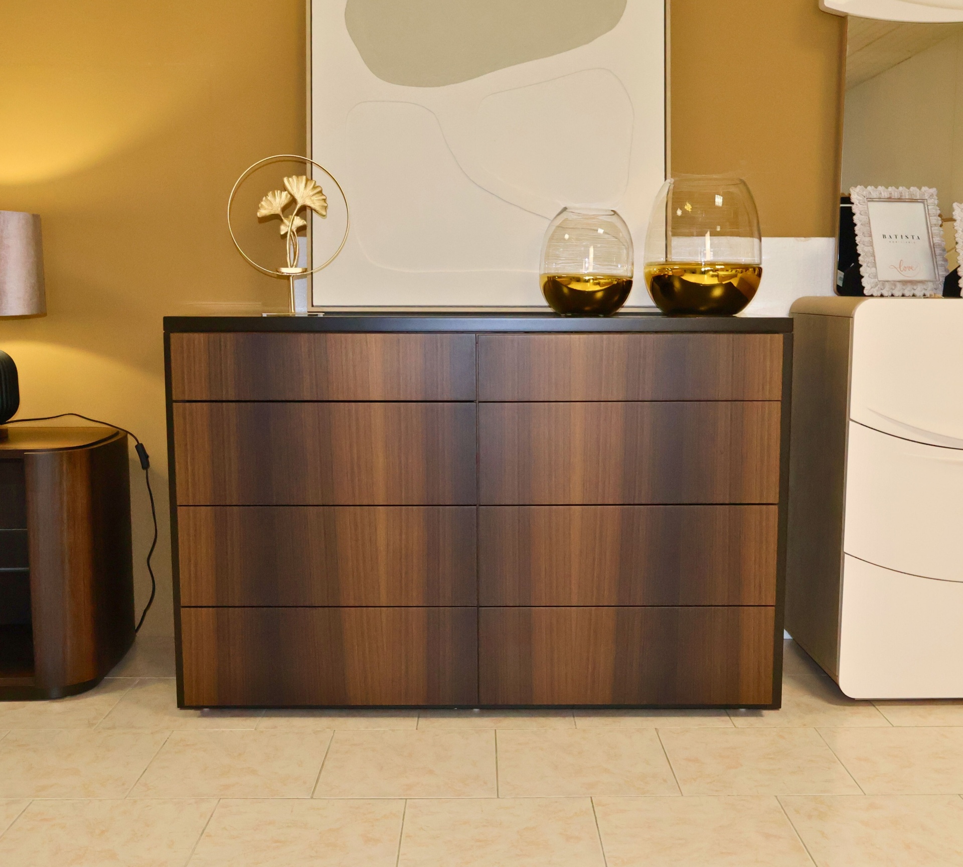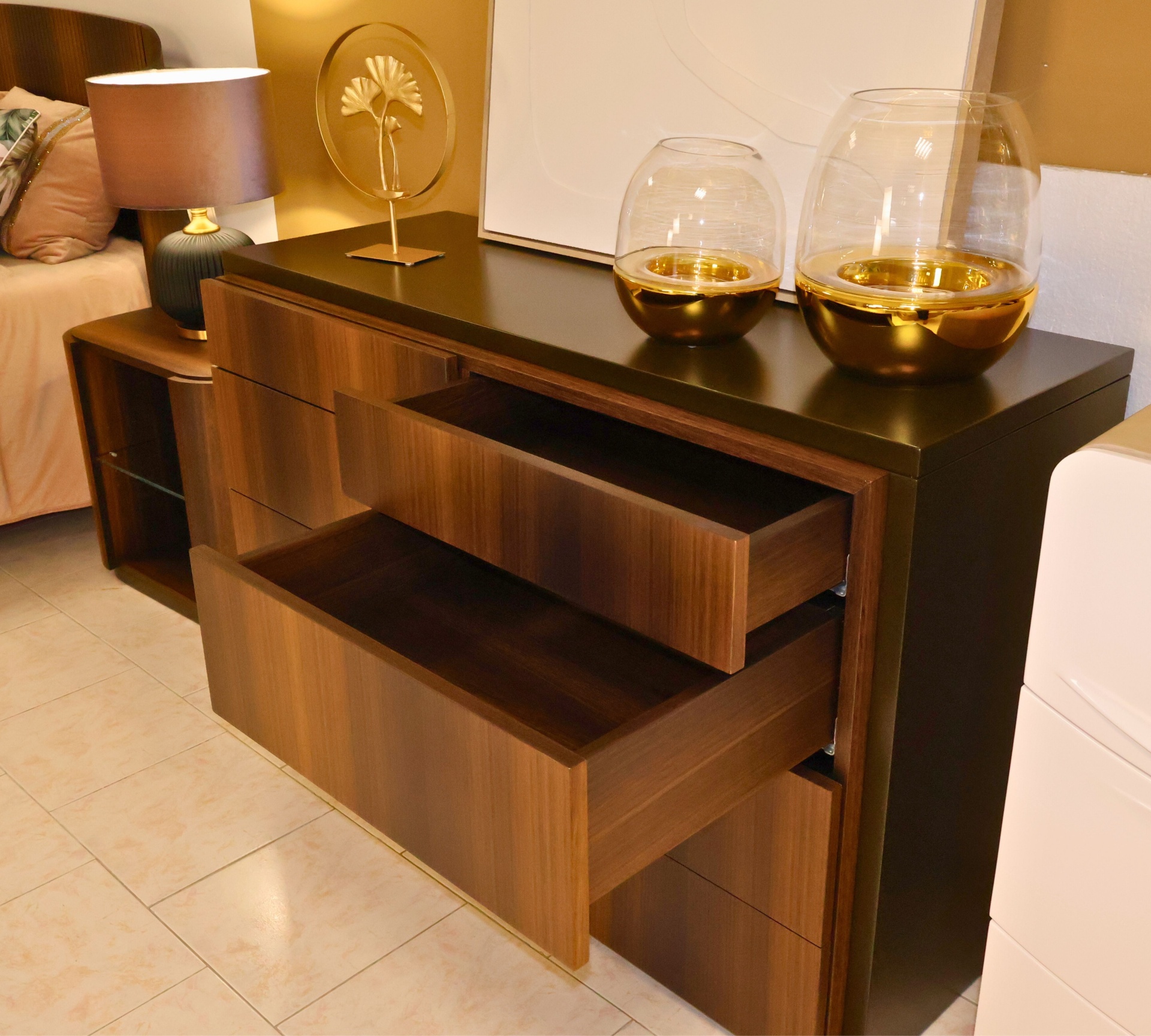 Home SALDOS Quarto casal ZEUS -35% Quarto casal ZEUS 2.834,65 € 4.361,00 € Desconto de 35%. Comprar Contactar Adicionar à wishlist O quarto de casal ZEUS foi pensado para quem procura um ambiente moderno e minimalista. Conjuga na perfeição o acabamento em eucalipto fumado, com o lcado mate e o vidro. Dimensões: Cama (para colchão de 195x160, com estrado metálico incluído): Comprimento. 1.79m Profundidade: 2.00m Altura: 1.10m Mesa de cabeceira (2 unid.): Comprimento: 0.60m Profundidade: 0.45m Altura: 0.54m Cómoda: Comprimento: 1.26m Profundidade. 0.56m Altura: 0.82m *Disponível no showroom. Campanha de saldos válida de 15 de Janeiro a 28 de Fevereiro de 2026, limitado ao stock existente. O artigo entregue será o que está na foto. Partilhar