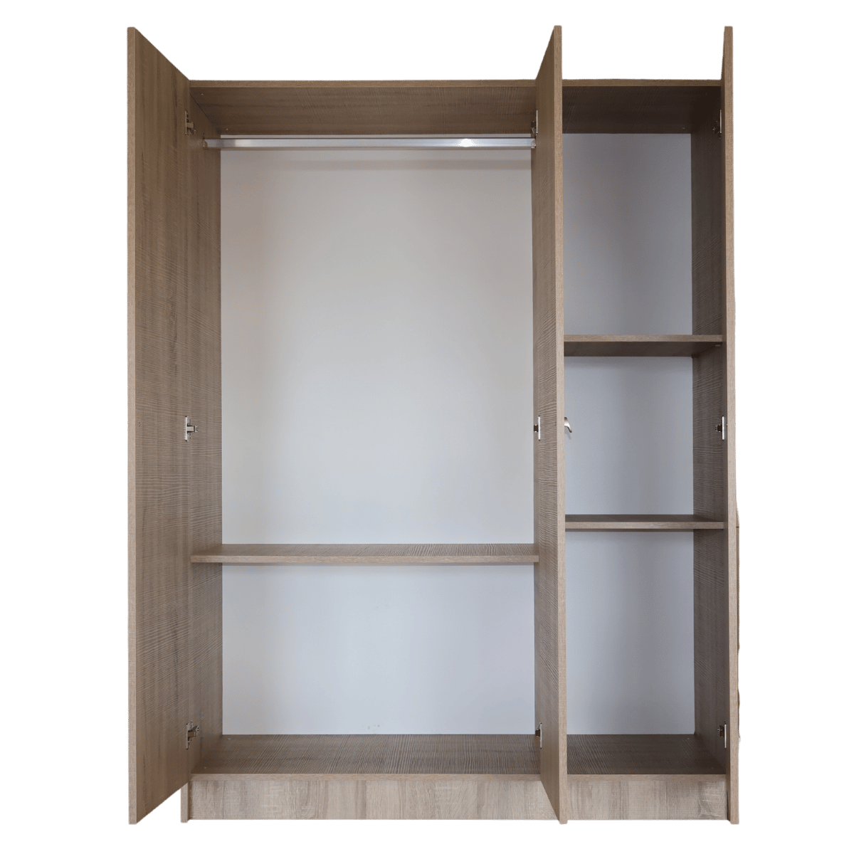 O roupeiro de 3 portas em acabamento carvalho cinza é uma solução prática e económica para organizar qualquer divisão. Com design simples e funcional, adapta-se facilmente a diferentes estilos de decoração.