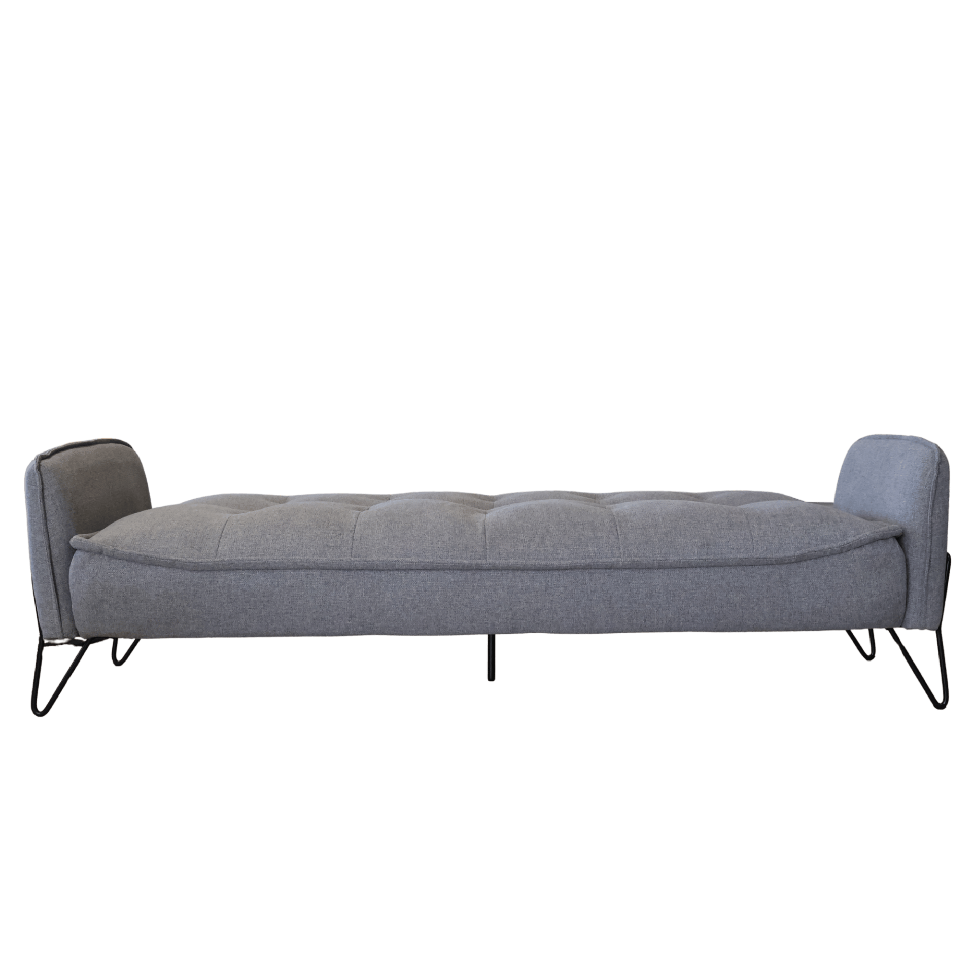 Este sofá transforma-se facilmente em cama, oferecendo uma solução prática para receber visitas ou criar um espaço de descanso adicional. O assento confortável e o encosto acolchoado garantem uma utilização agradável tanto na posição de sofá como de cama.
