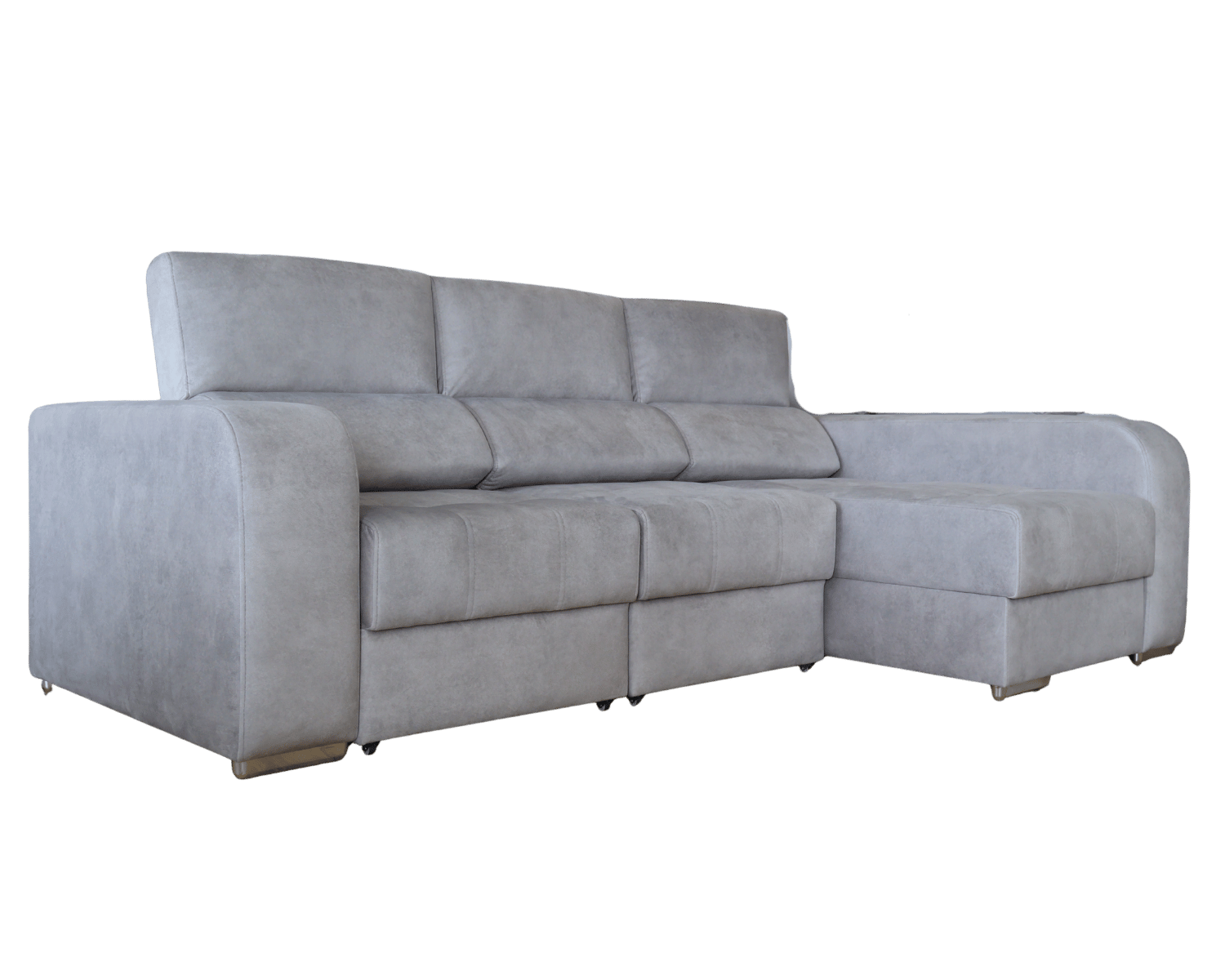 Sofá chaise longue de design moderno, ideal para criar um ambiente confortável e elegante na sala de estar. O sistema de assentos deslizantes permite aumentar a profundidade do assento, proporcionando maior conforto e tornando este sofá perfeito para momentos de descanso.